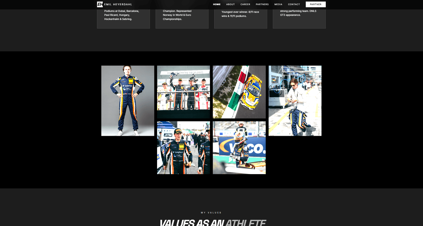 Built the official personal brand website for Emil Heyerdahl — a professional racing driver. Cinematic, high-impact design built to attract sponsors, showcase his career, and grow his public profile in the motorsport world.
