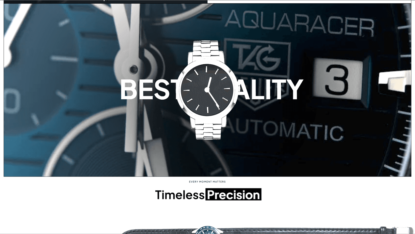 Built Swiss Time Deals — a luxury watch e-commerce store selling authentic Swiss timepieces at competitive prices with free UK delivery. Catalogue spans TAG Heuer Formula 1 chronographs, Aquaracer diamond watches, and Gucci luxury pieces. 9+ pages of products, cinematic 'Elegance. Timing.' editorial branding.